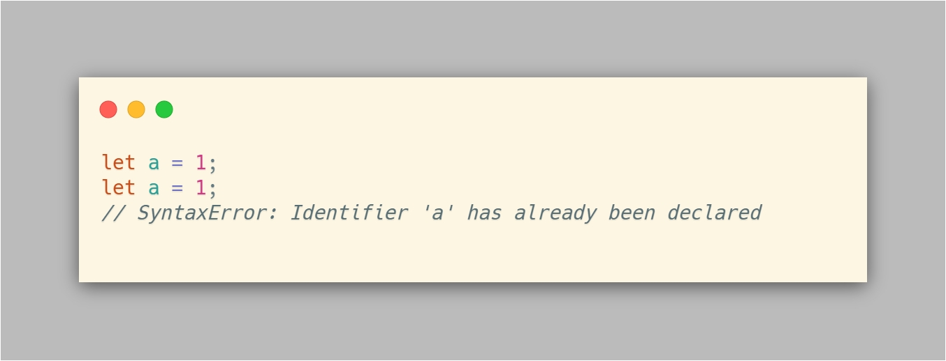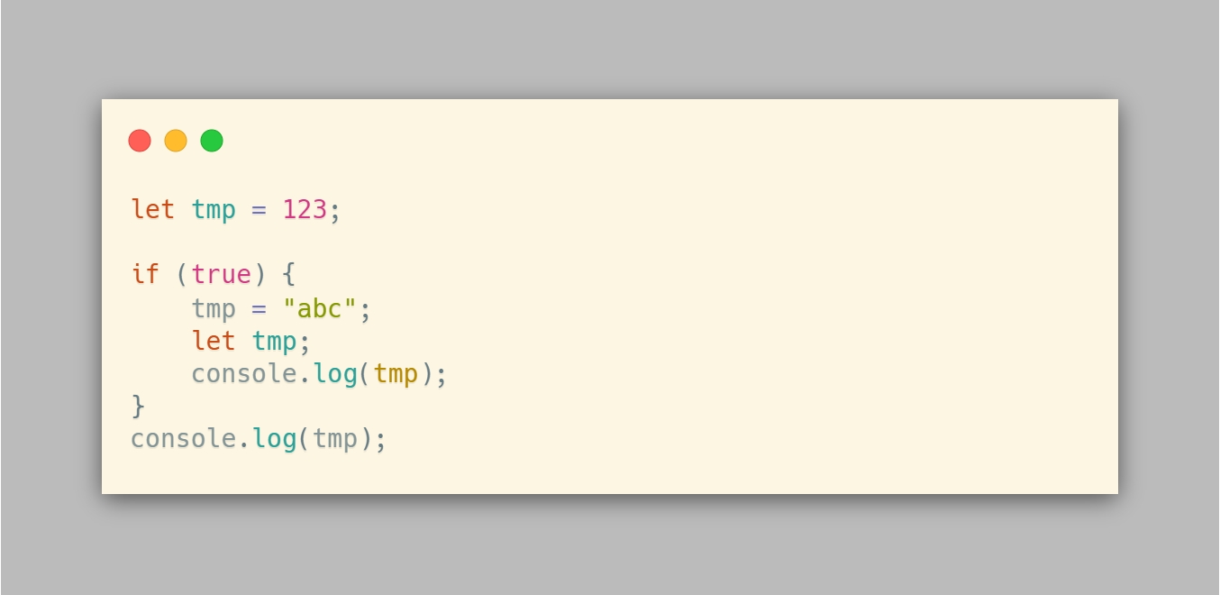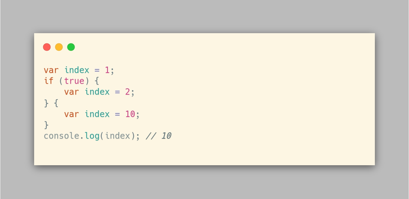 var能重复声明的机制会让你很轻易地破坏原有的变量,在代码很少的时候或许你能谨慎地尽量不重复声明,但是当代码很多的时候,意外地重复声明变量是难以避免的。