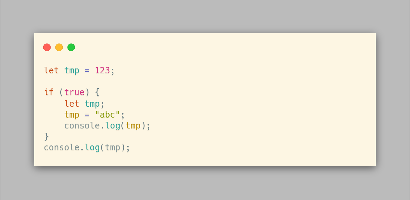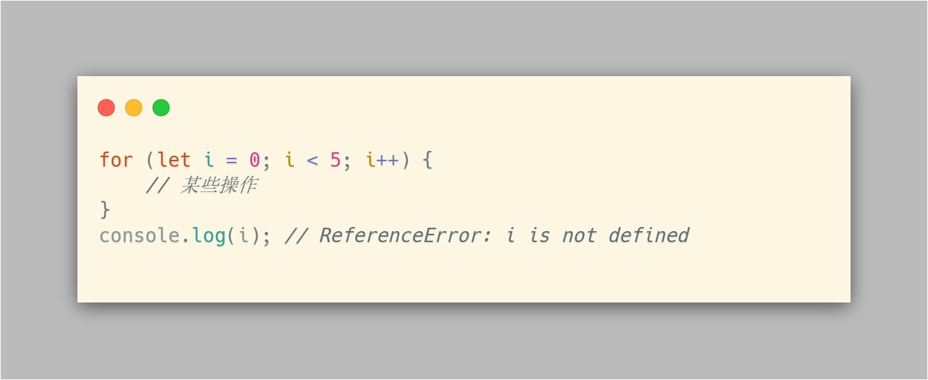 这种宽泛的作用域对于if、for的语法不太友好,试想一下以下代码: