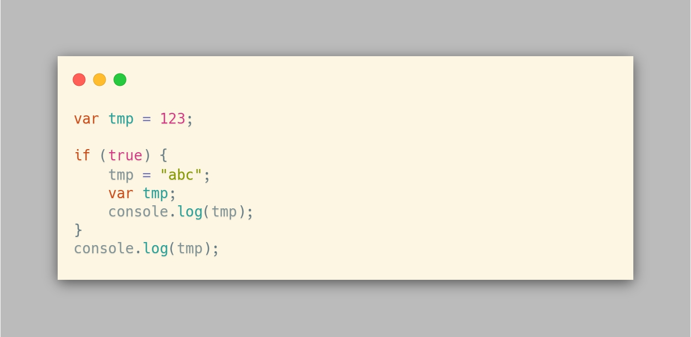 因为var会进行变量提升,所以其实在提升时第二个tmp就覆盖了第一个tmp变量,最终输出都是abc。