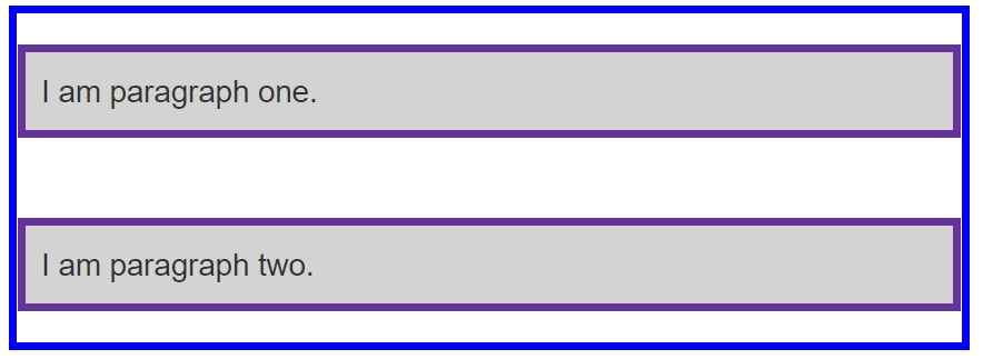 在下面的例子中,我们有两个段落。顶部段落的页 margin-bottom为50px。第二段的margin-top 为30px。因为外边距折叠的概念,所以框之间的实际外边距是50px,而不是两个外边距的总和。